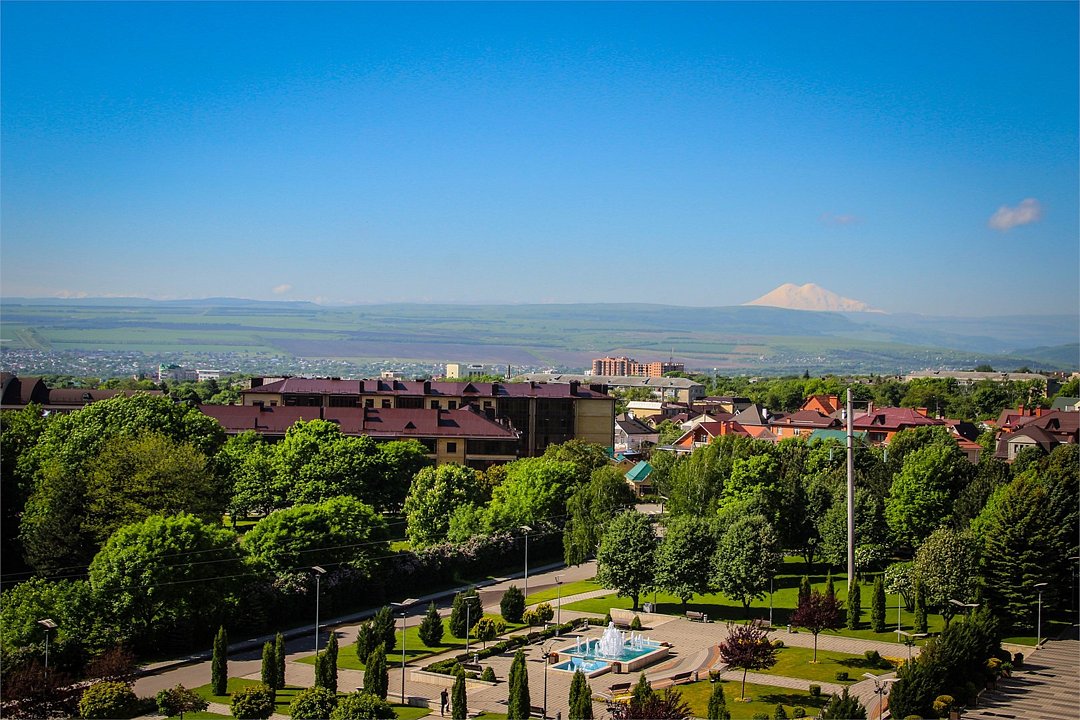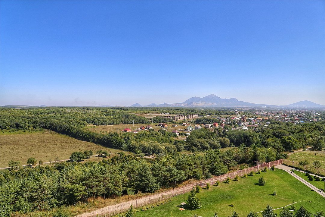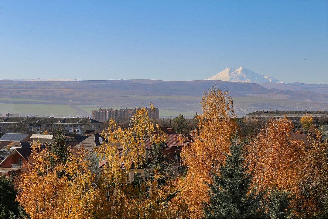Вид из окон: юг — бесконечная цепь снежных горных вершин (Главный Кавказский хребет) и гордый Эльбрус. Север — завораживающие горы-лакколиты и живописные пейзажи предгорья Кавказских Минеральных Вод.