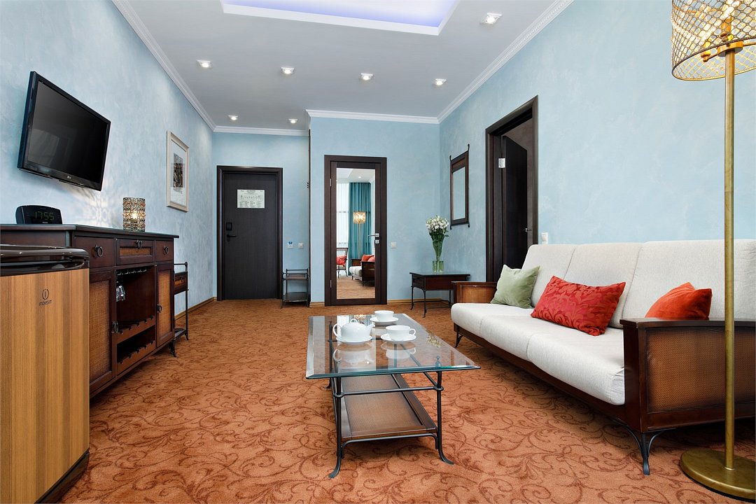 Особенности номера: двухкомнатный номер, состоящий из уютной гостиной и комфортабельной спальни. Номер оборудован двумя раздельными санузлами.