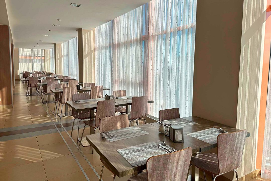 Режим работы: завтрак с 08:00 до 10:00, обед с 13:00 до 15:00, ужин с 18:00 до 20:00.