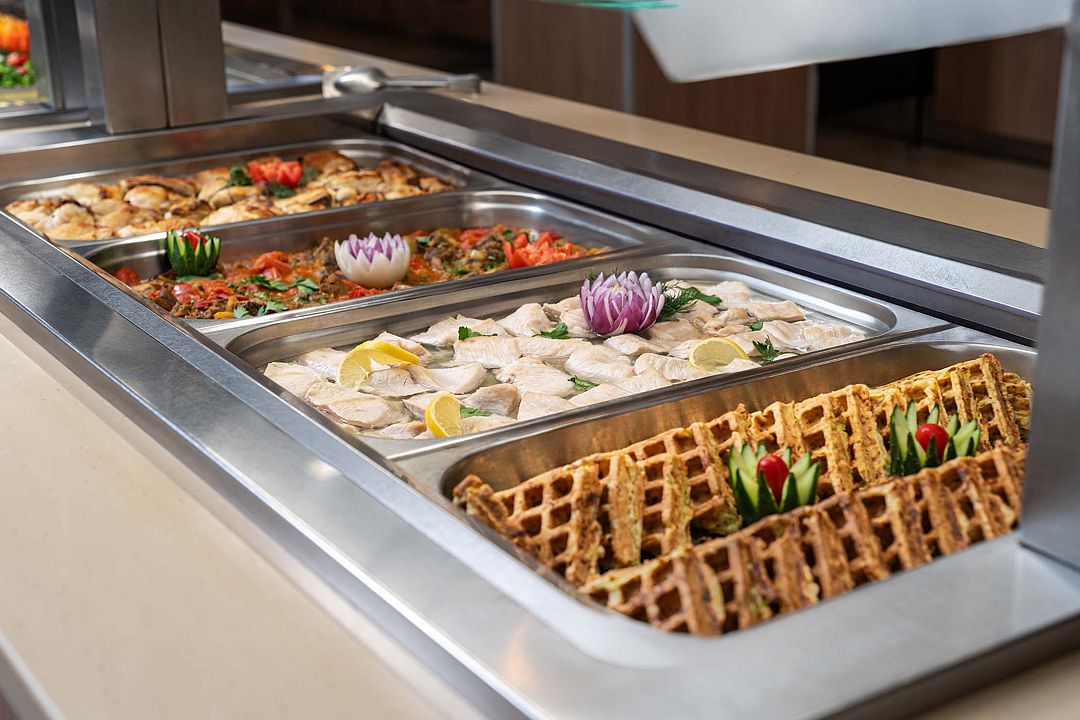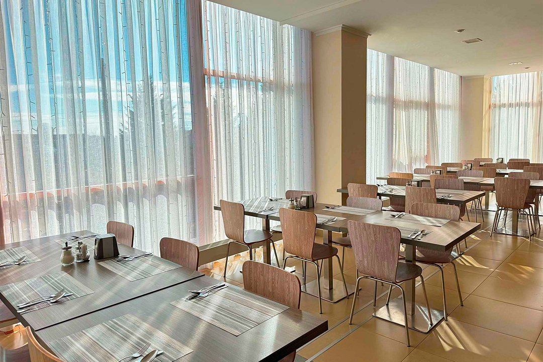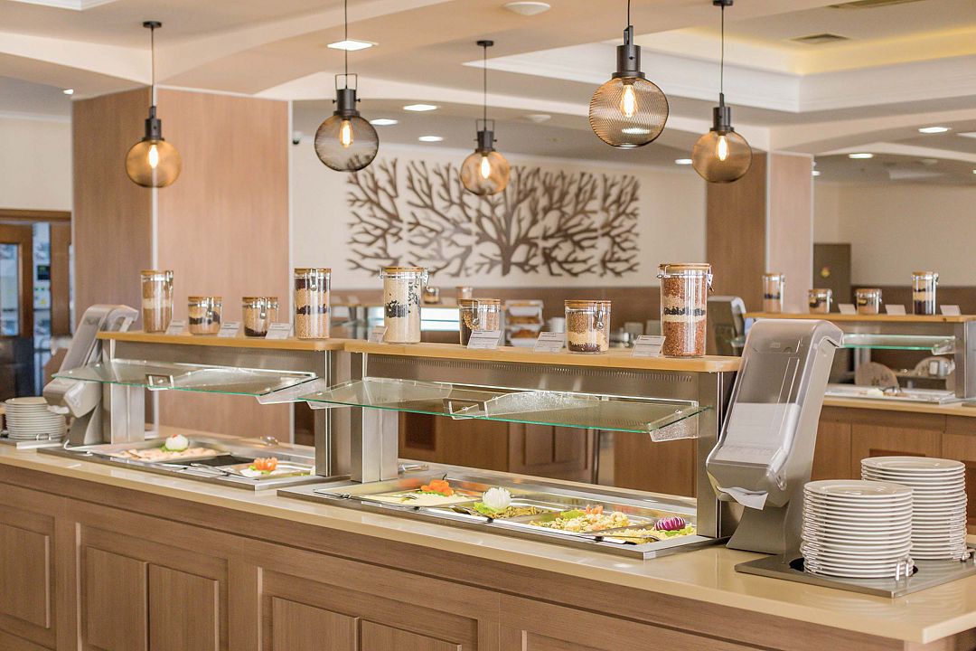 Просторный и светлый зал питания «Скандинавия» расположен на 3 этаже. Вместимость: до 400 человек. Услуги предлагаются для гостей, отдыхающих в номерах категории «Стандарт», «Семейный». Уютный зал предоставляет огромный выбор блюд по системе «Шведский стол». Диетические блюда европейской, кавказской и русской кухни гармонично сочетаются со свежими фруктами, традиционными десертами и напитками.